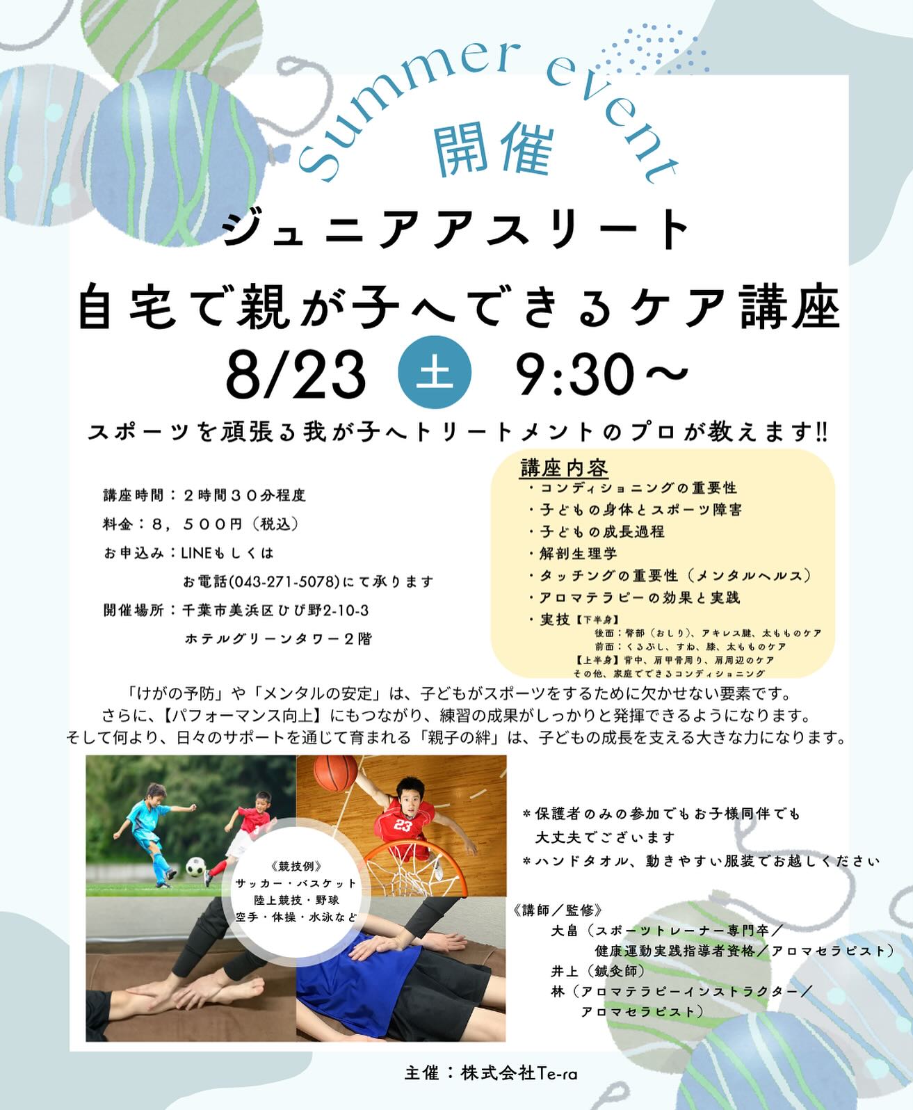 スポーツを頑張る我が子へトリートメントのプロが教えます!!